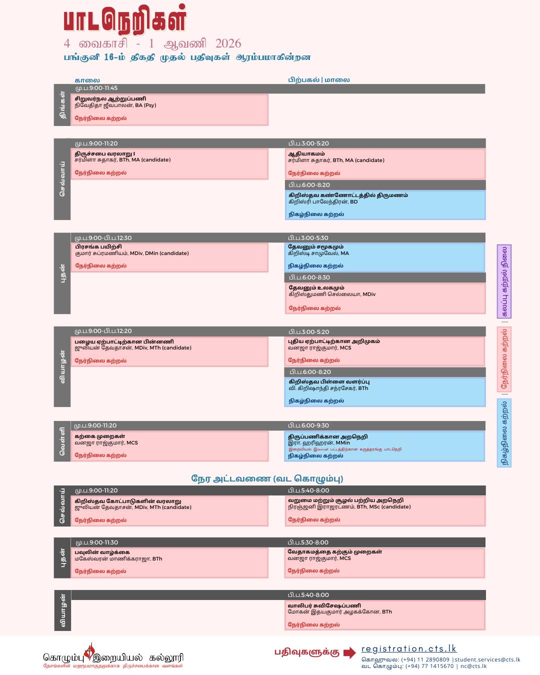 Check below for more information on the English, Sinhala and Tamil Courses.